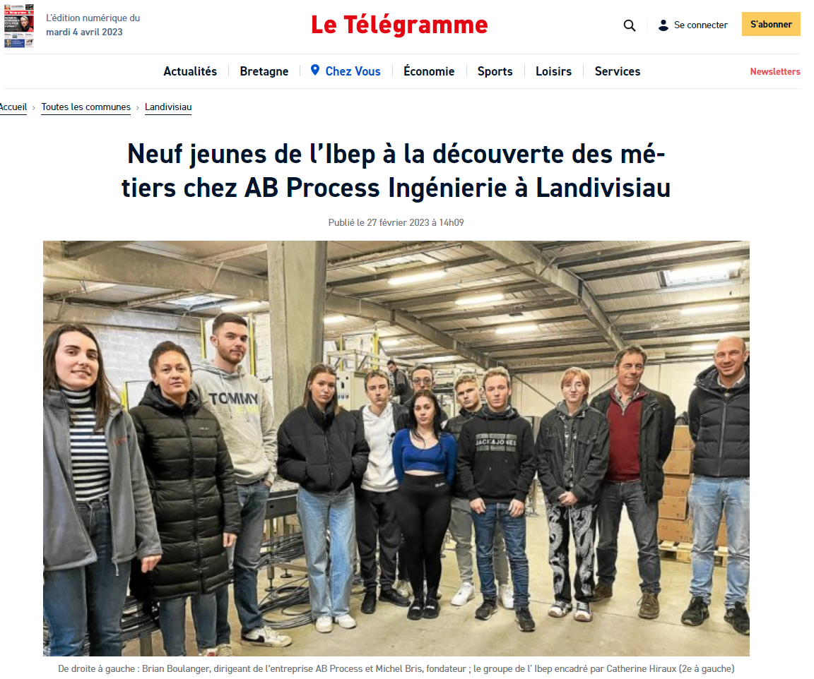« Neuf jeunes de l’Ibep à la découverte des métiers chez AB Process Ingénierie à Landivisiau » – Le Télégramme