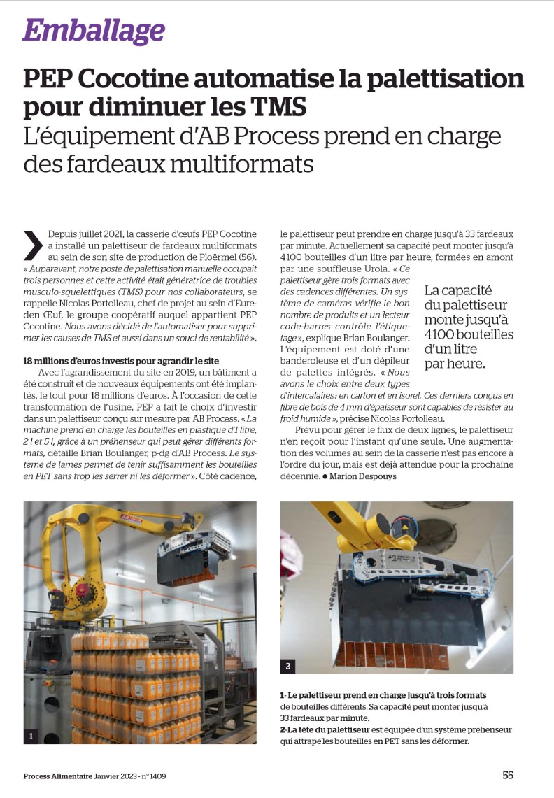« PEP COCOTINE automatise la palettisation pour diminuer les TMS » – Process Alimentaire